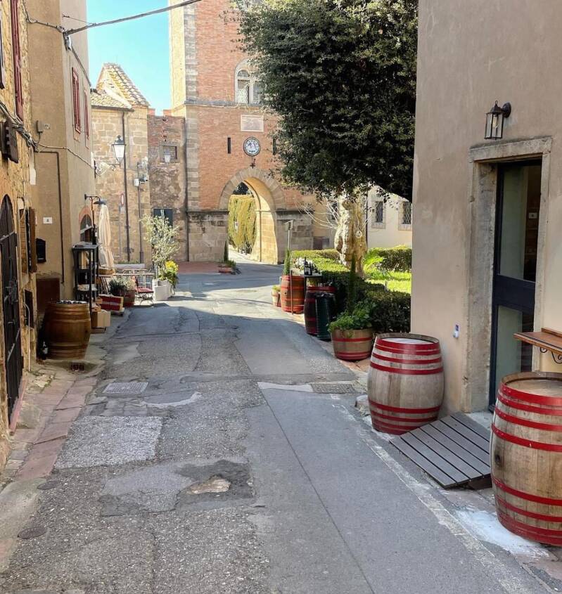 Het landschap is typisch Toscaans met reusachtige cipressen en olijfboomgaarden.
